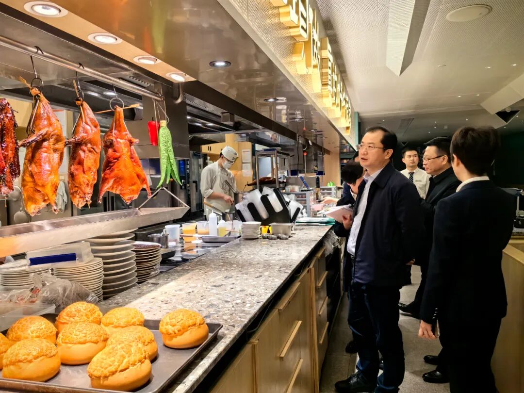 随后,徐继祥一行来到武商黄石购物中心,对食品安全问题进行了督导检查。调研组对武商负一楼超市食品安全工作进行了现场检查,并随机走进7楼茶港茶餐厅,认真检查了餐厅和后厨环境卫生情况,强调要充分履行食品安全主体责任,坚决防范餐饮环节食品安全风险,保障民众身体健康安全。