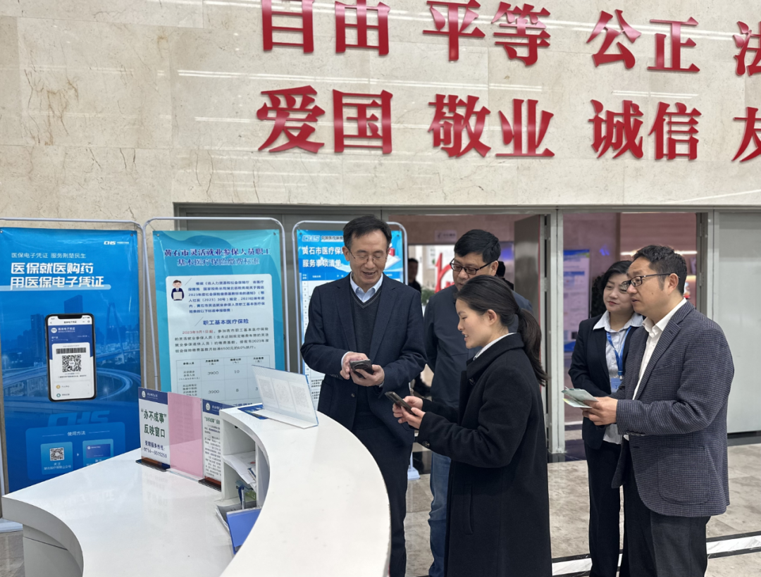 王见祥一行先后来到黄石市民之家、下陆区政务服务中心、开铁区铁山街道党群服务中心、开铁区胜利路社区党群服务中心,详细了解了全市市、县(市、区)、乡镇(街道)、村(社区)四级医保经办服务情况,并对经办事项下沉,医保软硬件设施建设、台账管理和服务环境等情况进行查看,并听取了医保经办工作人员和办事群众对医保服务体系建设的意见建议。