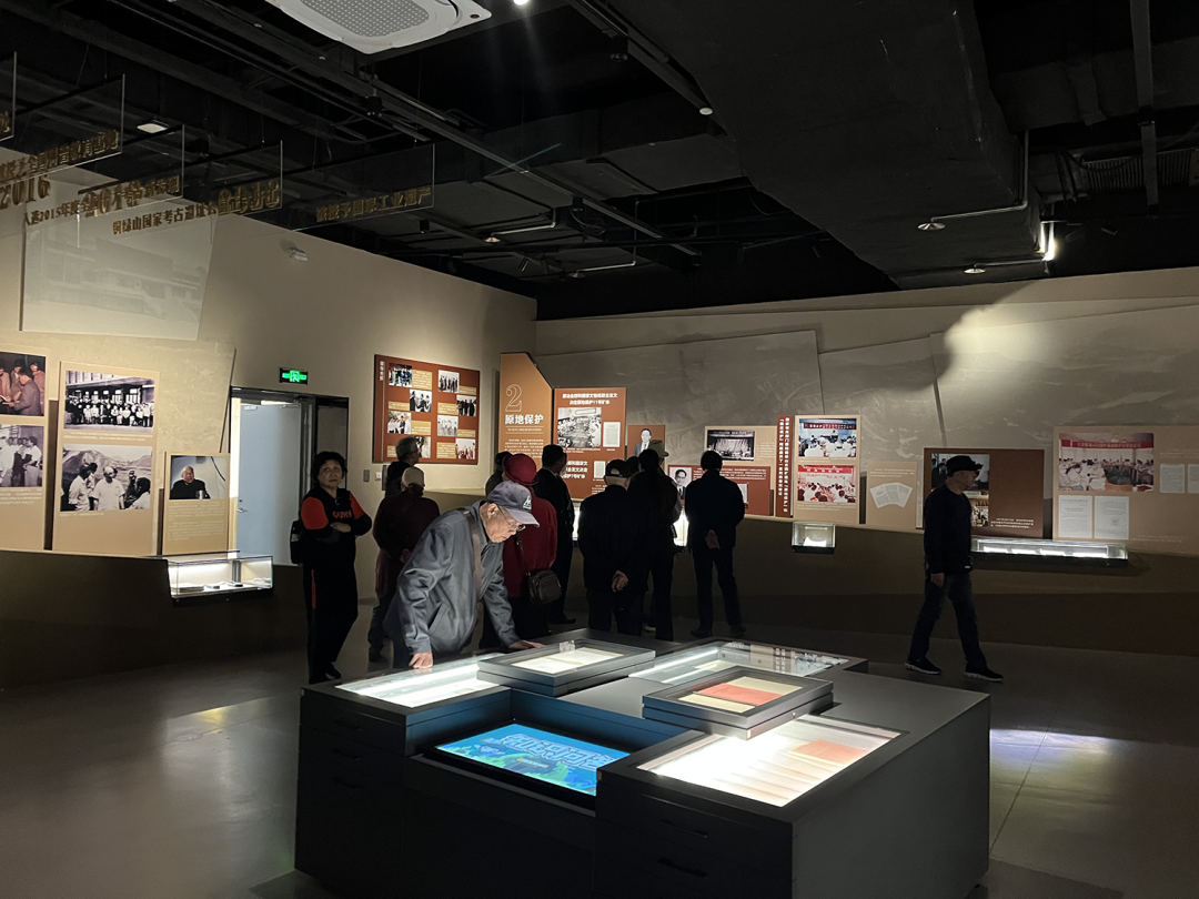 抵达被誉为“世界矿冶史上奇观”的铜绿山古铜矿遗址博物馆后,老同志们瞬间被其深厚的历史底蕴所吸引。在博物馆专业讲解员的引导下,老同志们依次参观了遗址的核心展区与考古发掘现场。在那些闪烁着古老智慧的采矿工具、冶炼器具以及琳琅满目的青铜器物面前,在历经数千年风雨依然结构精巧的竖井、斜巷、平巷等遗址面前,老同志们时而认真聆听讲解,时而俯身细察遗迹,时而相互交流探讨,仿佛穿越了三千多年的时空隧道,亲身感受着古代铜都炉火照天地、红星乱紫烟的壮丽生产场景,深切体会到了脚下这片土地所承载的悠久工业文明和灿烂青铜文化。