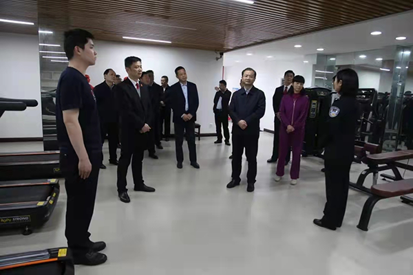 徐继祥一行先参观了市中院执行指挥中心、诉讼服务中心、大审判庭、法警体能中心、三楼文化墙、速裁办公室等场所,听取了刘恒明对法院建设、法院文化、法院工作等方面的详细介绍。