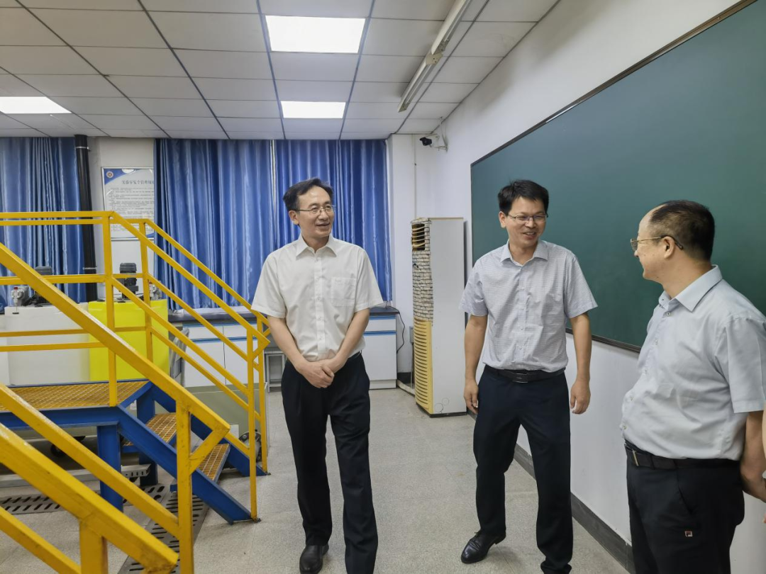 王见祥(左一)参观湖北理工学院环境科学工程实验室