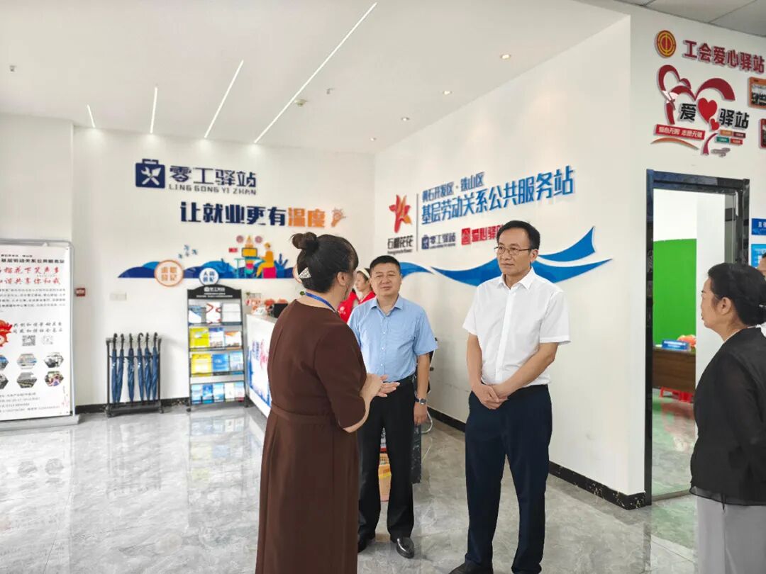 调研组一行深入柯尔山社区吾家就业服务站、光亮产业园邻里中心、市人社24小时便民E站等,详细了解我市家门口就业服务、基层劳动关系服务站和智慧便民服务推进等工作情况。