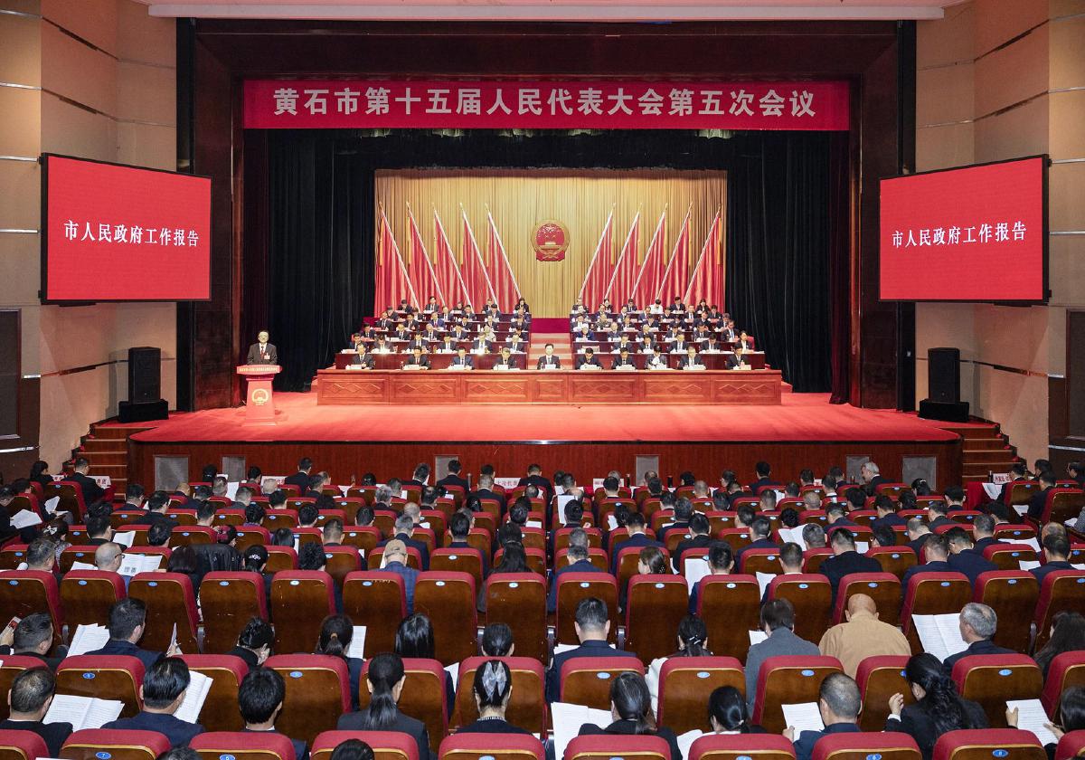 1月15日上午,黄石市第十五届人民代表大会第五次会议在磁湖剧院开幕。